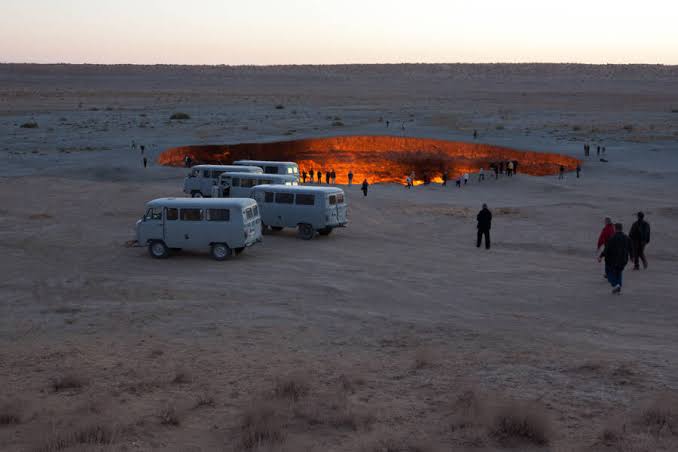 Darvaza gas crater, also known as the Door to Hell or Gates of Hell, Turkmenistan